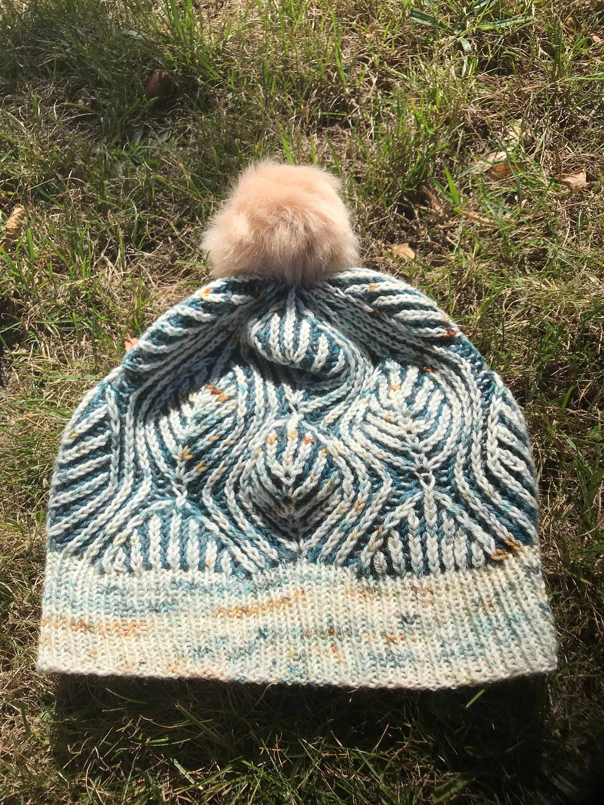 J'ai réalisé deux fois ce bonnet et j'avoue que le fade avec la Arwetta de chez Christine (alias Triscote) est mon préféré.