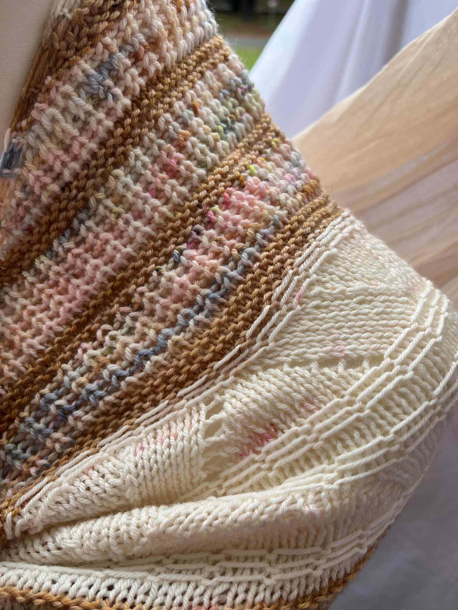 - Aiguilles circulaires de 3,75 mm, ou de la taille nécessaire pour obtenir le bon échantillon pour le corps du châle.