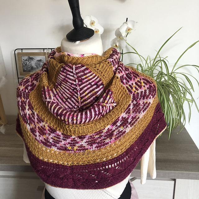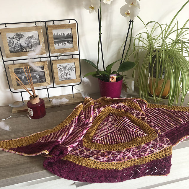 J’ai imaginé ce châle pour vous, mes abonné(e)s Instagram et j’espère être à la hauteur de vos attentes pour ce petit Kal annuel. De mon imagination et de toutes idées autour du terme Psyché est né ce joli châle ! Alors à votre avis à quoi ressemble-t-il ?
