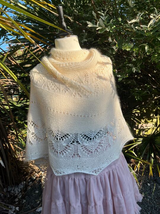 Cette fois ci encore, il s’agit d’une collaboration avec Céline de la mercerie Sur Un Fil d'Orsay. J'ai choisi de réaliser ma version en uni, pour être dans le thème cérémonie/mariage mais vous pouvez tout à fait jouer avec les couleurs entre le mohair et la fingering et pourquoi pas utiliser vos restes de mohair pour faire un fade ou un arc en ciel dans les parties de point mousse.