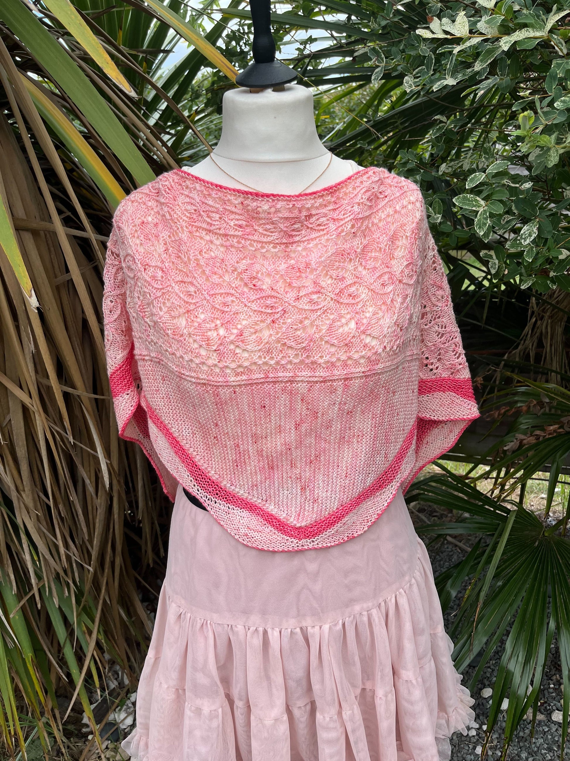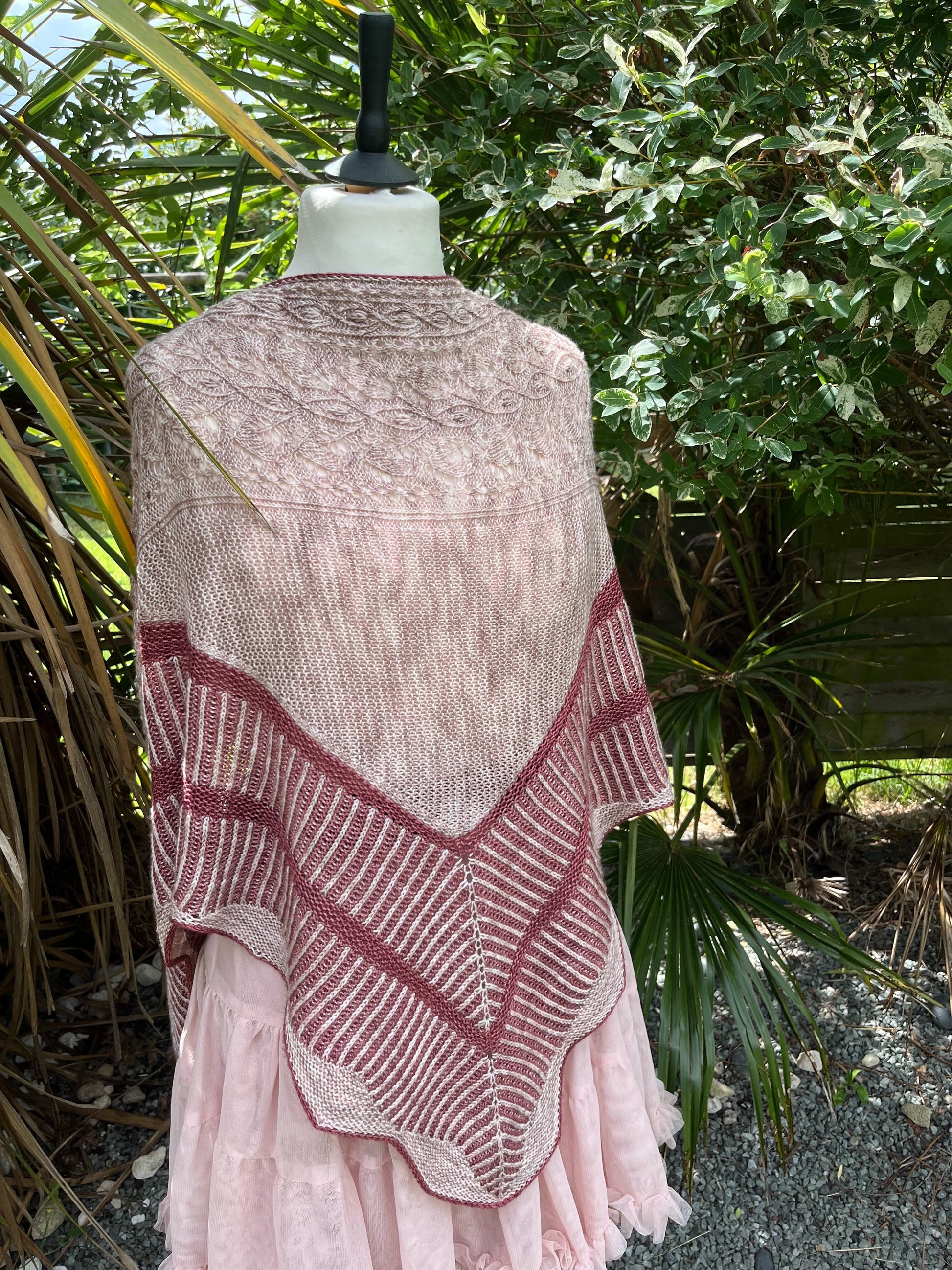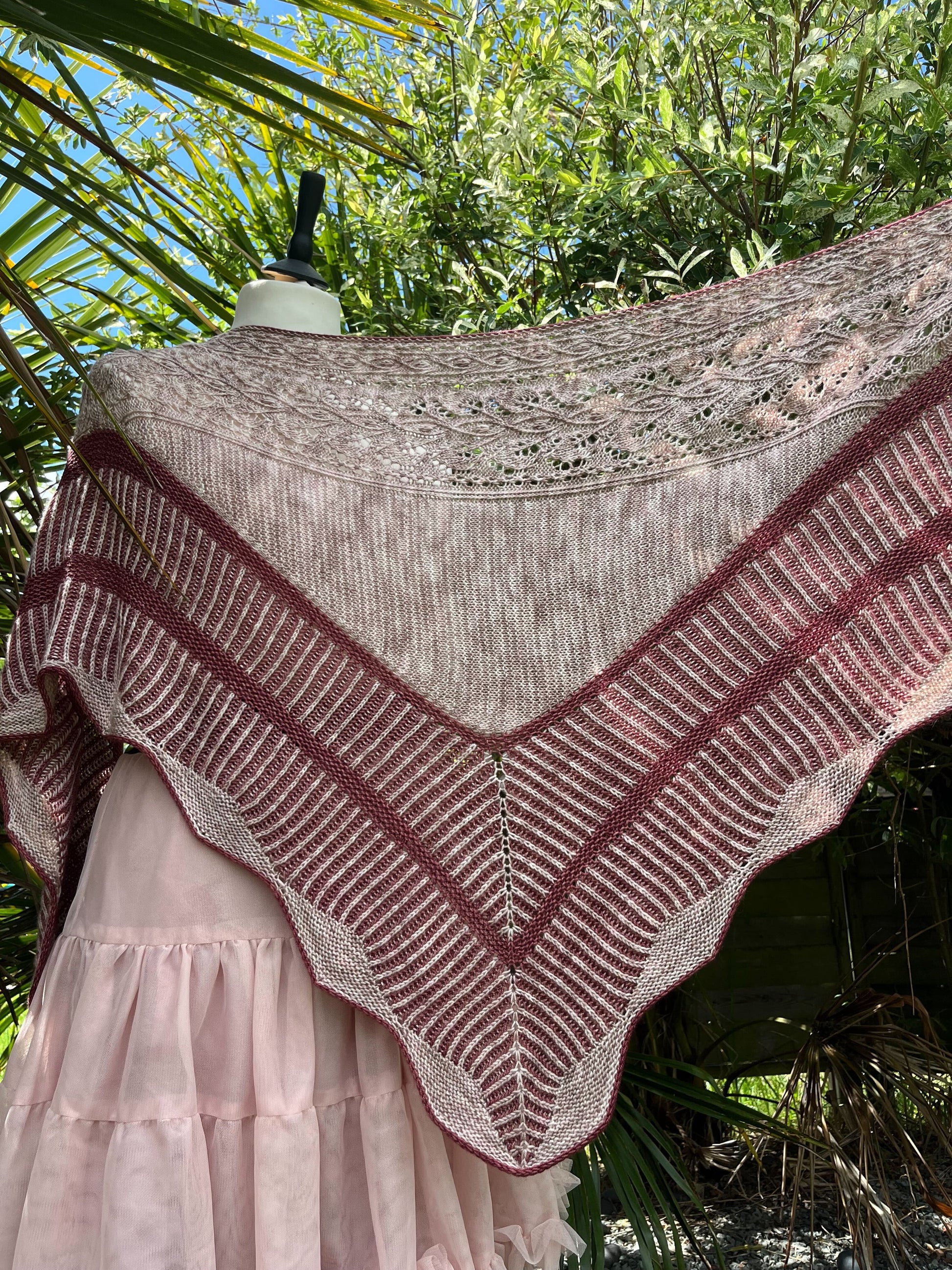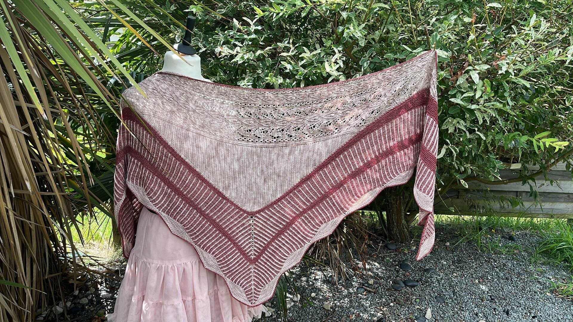 Un Jardin de Camélias est un joli châle tout en douceur et féminin et élégant. Il est à la fois chic et élégant et saura vous challenger tout au long de sa construction. Ce joli châle est composé d’un soupçon de dentelle, de point mousse et de vaguelettes, le tout ourlé d’un I-cord contrastant.