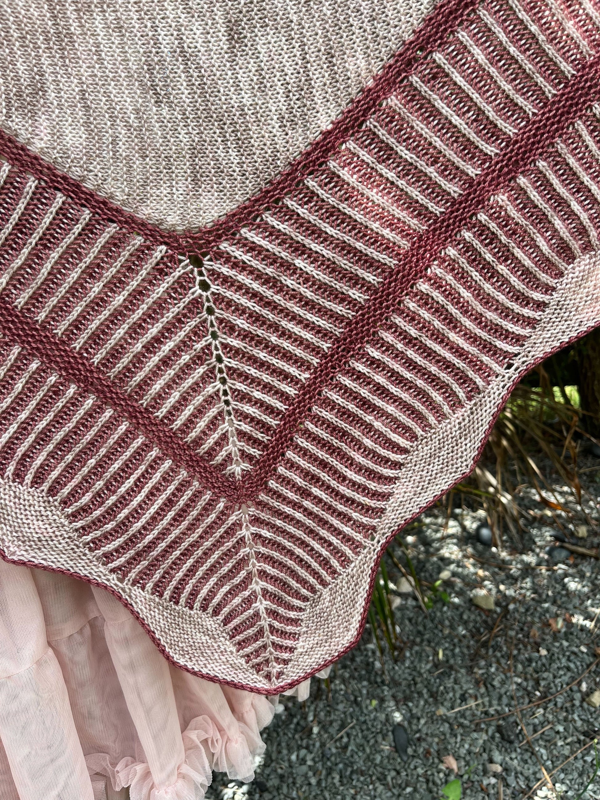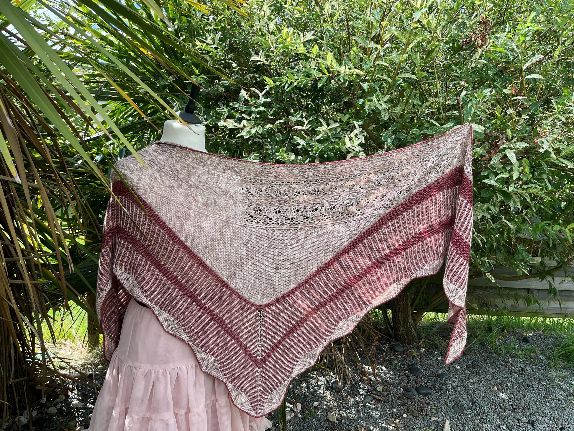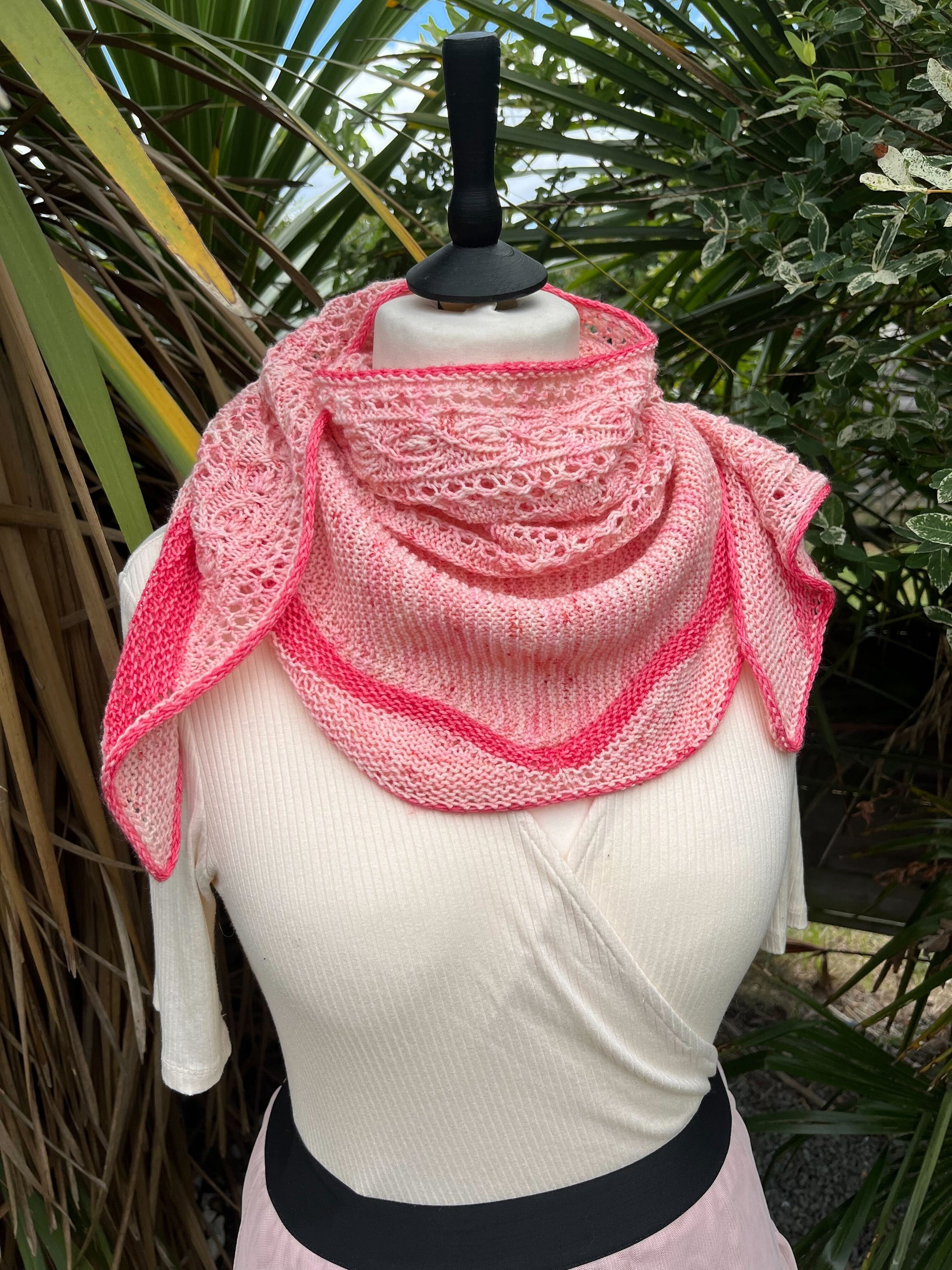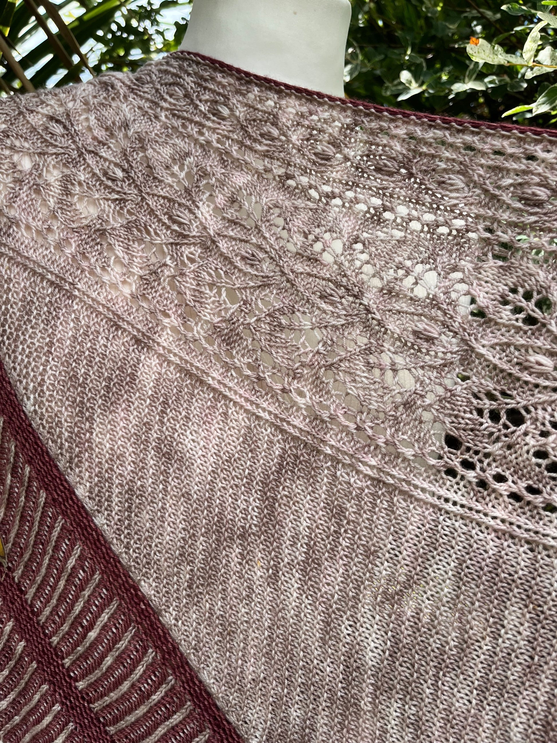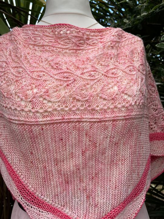 Un Jardin de Camélias est un joli châle tout en douceur et féminin et élégant. Il est à la fois chic et élégant et saura vous challenger tout au long de sa construction. Ce joli châle est composé d’un soupçon de dentelle, de point mousse et de vaguelettes, le tout ourlé d’un I-cord contrastant.