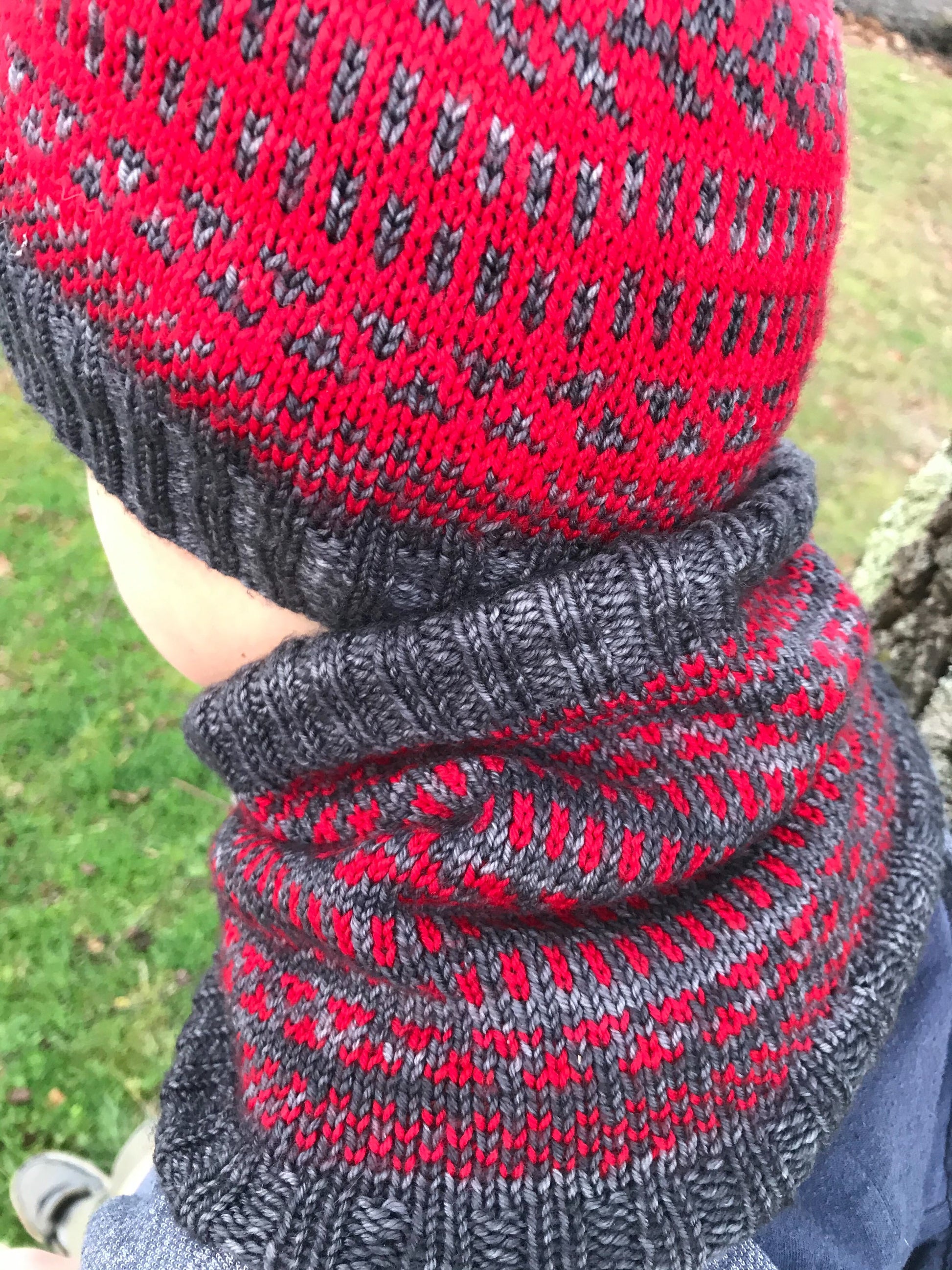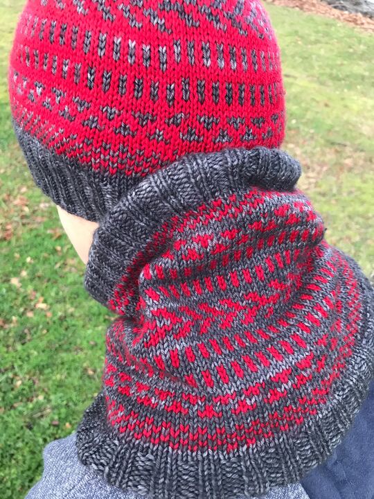 J'ai imaginé ce col tout doux pour mon petit garçon de 5 ans qui voulait un snood avec des dessins rouge et gris. Pour son confort et le votre je l'ai voulu doublé en laine douce, ici la arwetta de Filcolana.