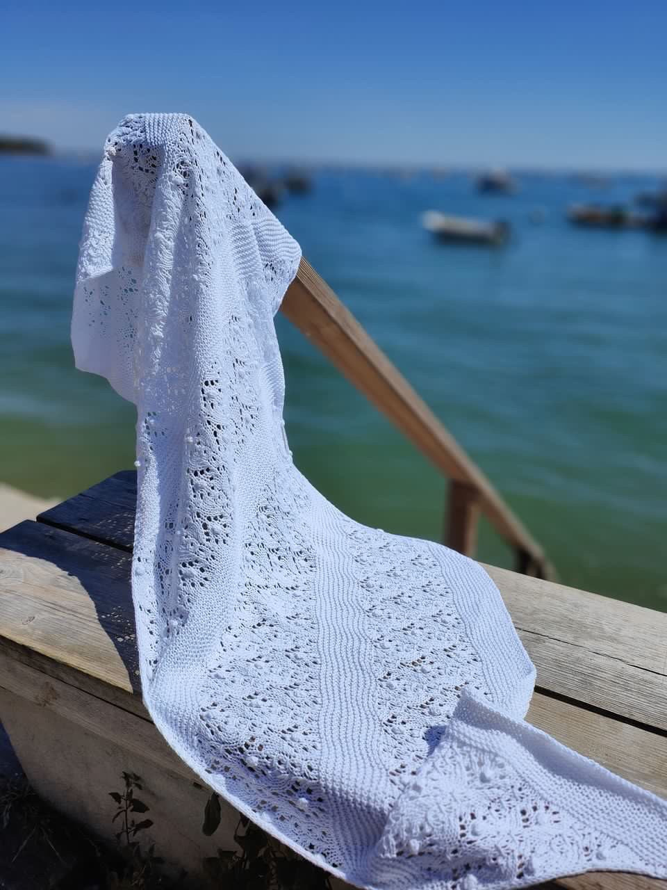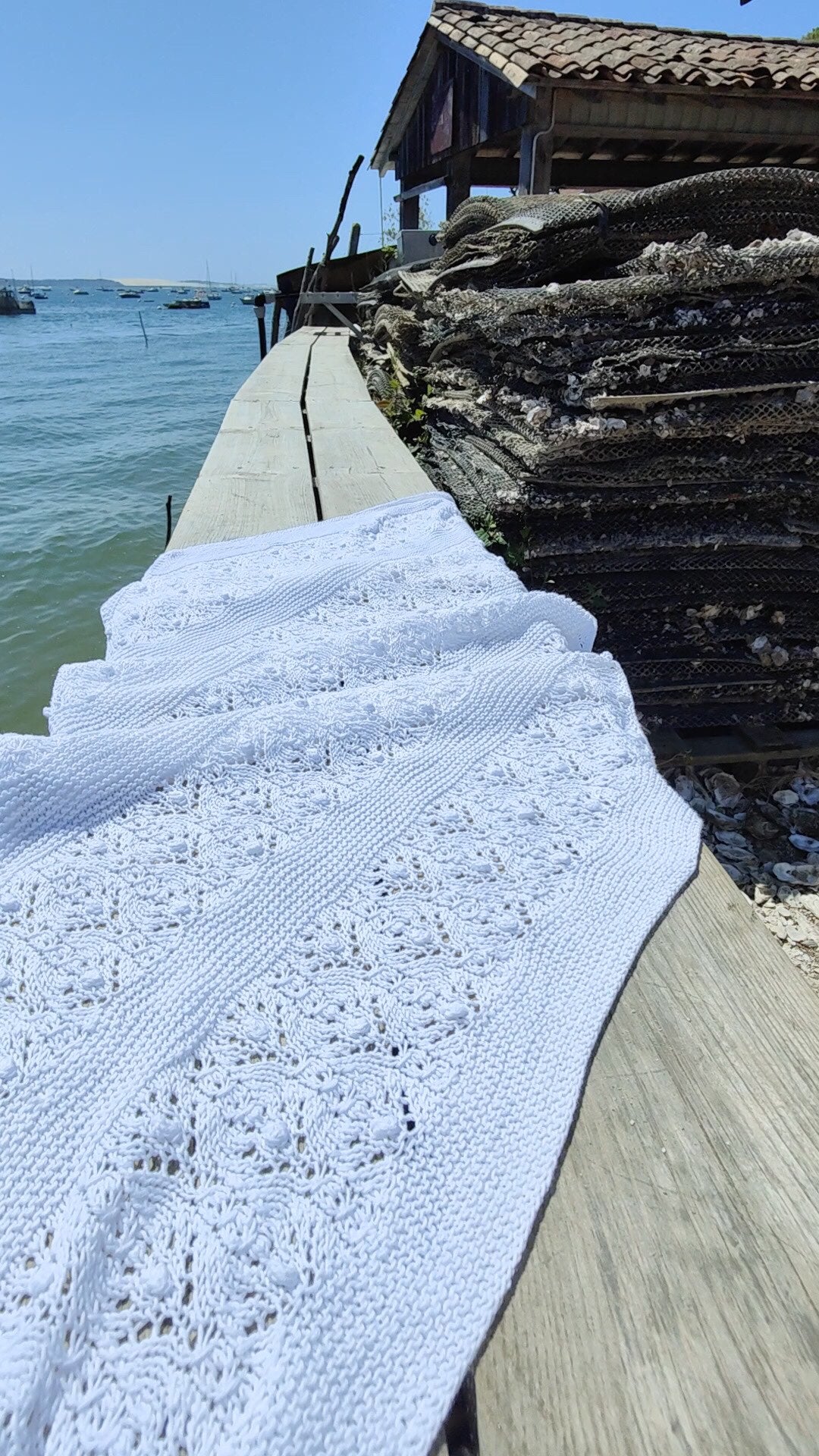 Son coton cachemire était le fil idéal pour une étole aérienne qui révèle magnifiquement le point de dentelle.