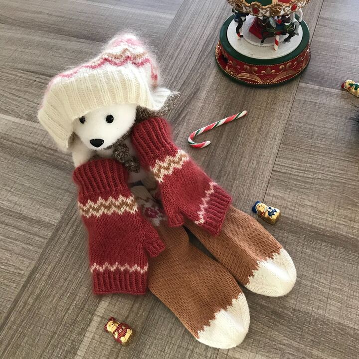 D'ailleurs sais-tu pourquoi Hellébore ? Non ? Oui je sais j'aime bien te poser des questions ... Alors, hellébore est une rose d’hiver, c’était tout trouvé non ? Donc voilà je te présente notre Hellébore à nous, sous forme de mitaines.