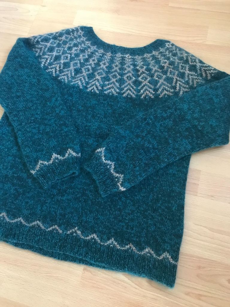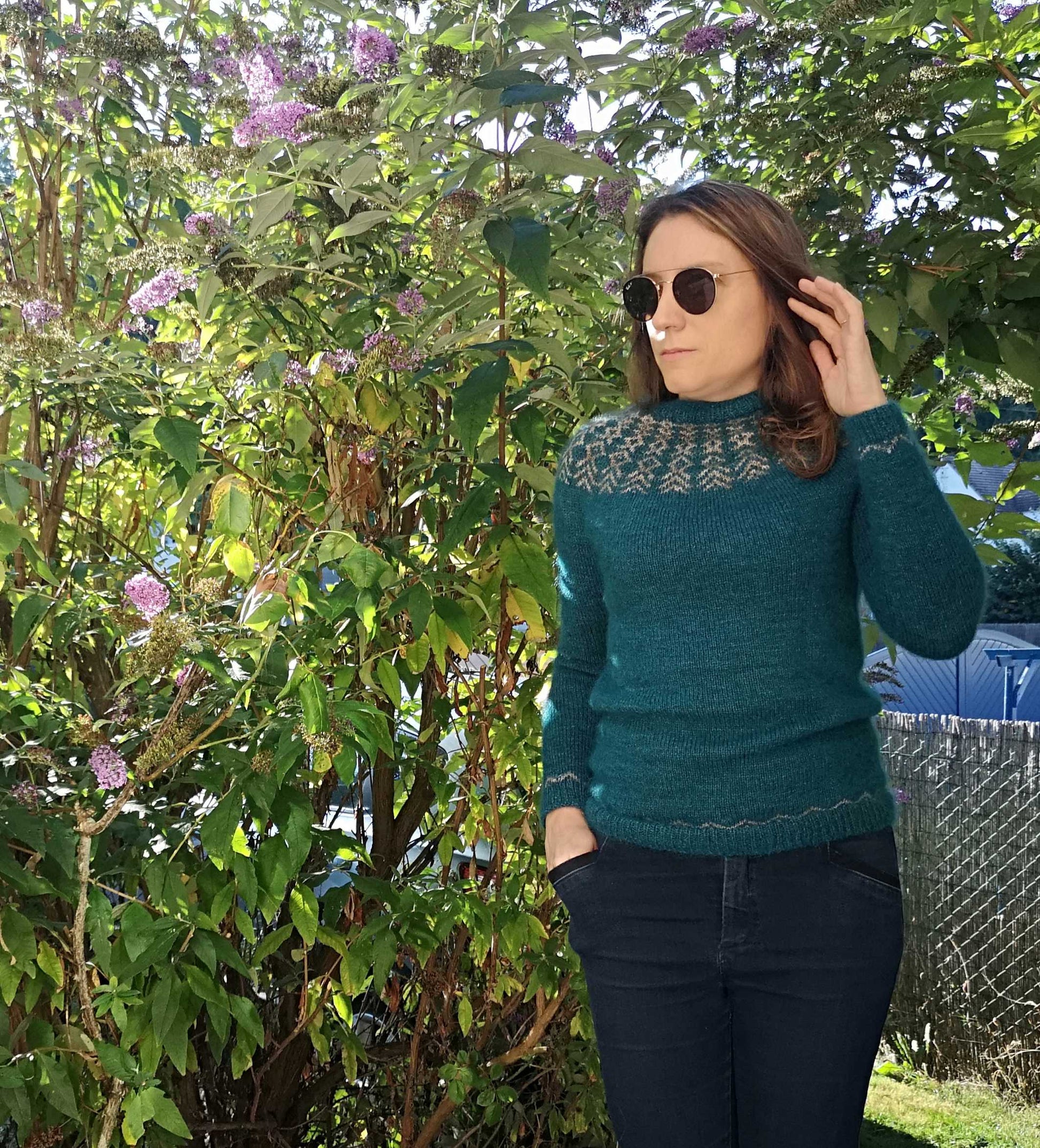 Le pull Heather est un pull en top down, tricoté en rond sans couture. Il est composé d’un empiècement jacquard géométrique qui mettra en valeur tes jolies laines et d’un joli motif de rappel sur les manches et le bas du corps.